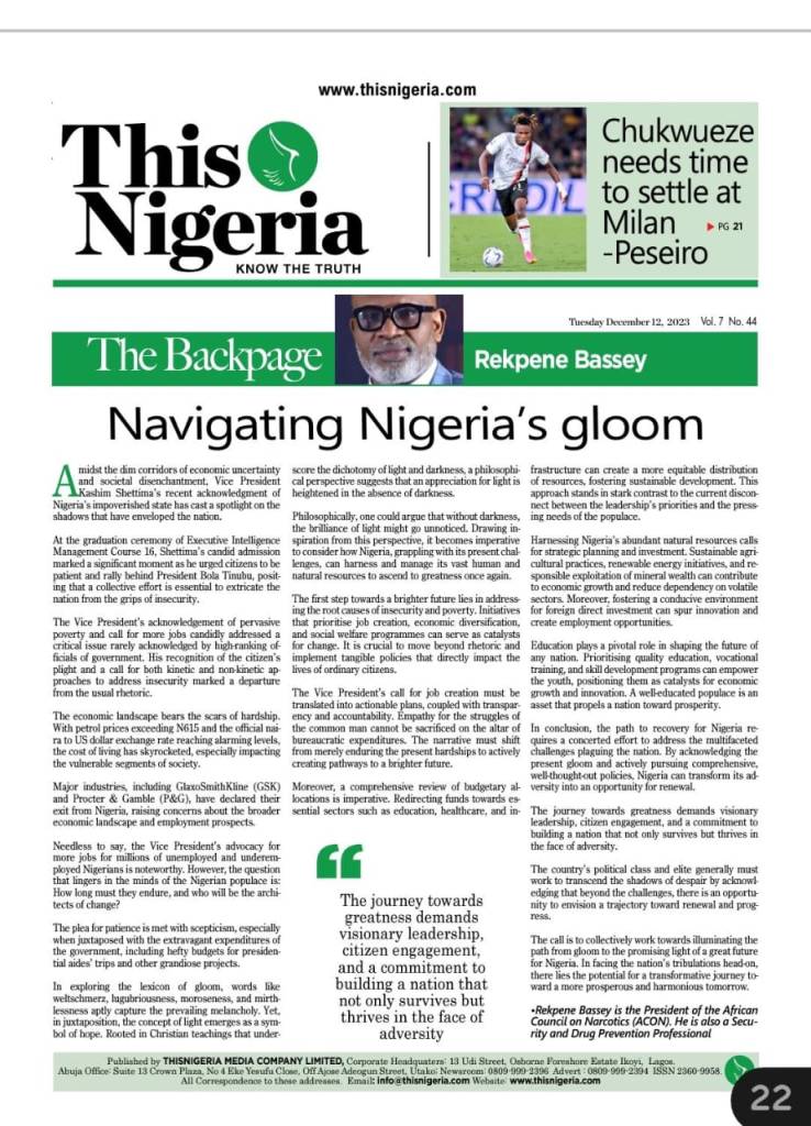 navigating nigeria’s gloom Posted on January 18, 2024 by African Council on Narcotics - ACON Share this: Click to share on X (Opens in new window) X Click to share on Facebook (Opens in new window) Facebook Like Loading... Related Published by African Council on Narcotics - ACON View all posts by African Council on Narcotics - ACON